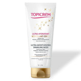 La Leche Corporal Espumosa Ultra-Hidratante Topicrem hidrata instantáneamente su piel y está enriquecida con micropartículas doradas para un hermoso brillo añadido que hace que su piel esté radiante - perfecto para las noches de verano para realzar su bronceado para un acabado de lujo.