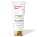 O Leite Corporal Espumante Ultra-Moisturizante Topicrem hidrata instantaneamente a sua pele e é enriquecido com micropartículas douradas para um belo brilho e brilho acrescentado que torna a sua pele radiante - perfeito para noites de Verão para realçar o seu bronzeado para um acabamento luxuoso.
